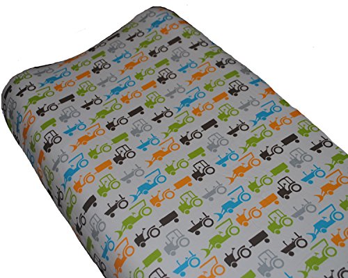 GO MAMA GO DESIGNS TRACTOR TRAILS CHANGING PAD COVER, WHITE/TURQUOISE/ORANGE