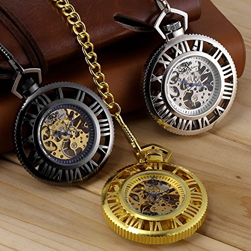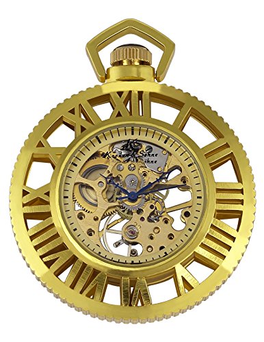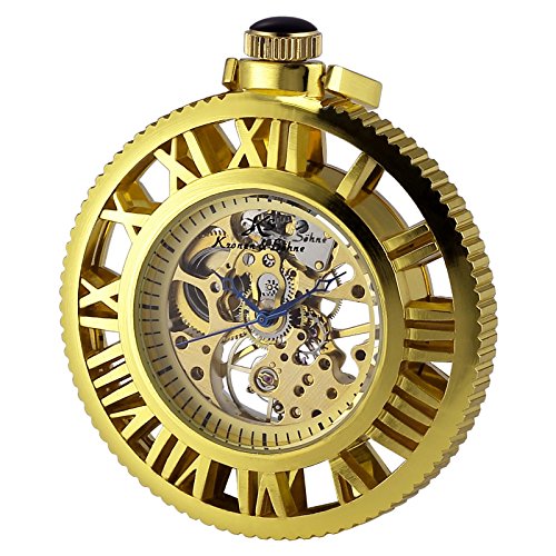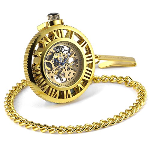 [K 에스]KS 회중 시계 태엽 기계식 스켈리턴 《호로》 로마 숫자 골든 기어 디자인 KSP070