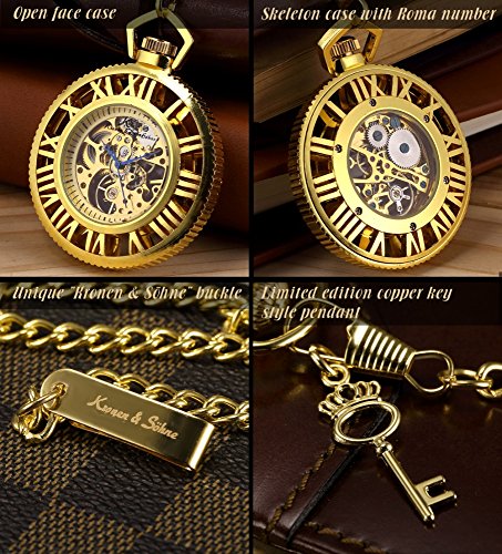 상품명: [K 에스]KS 회중 시계 태엽 기계식 스켈리턴 《호로》 로마 숫자 골든 기어디자인 KSP070