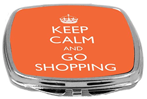 Rikki Knight Compact Mirror, Keep Calm and Go Shopping, Orange