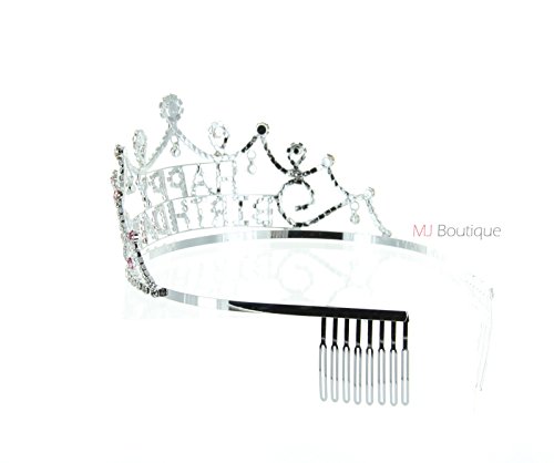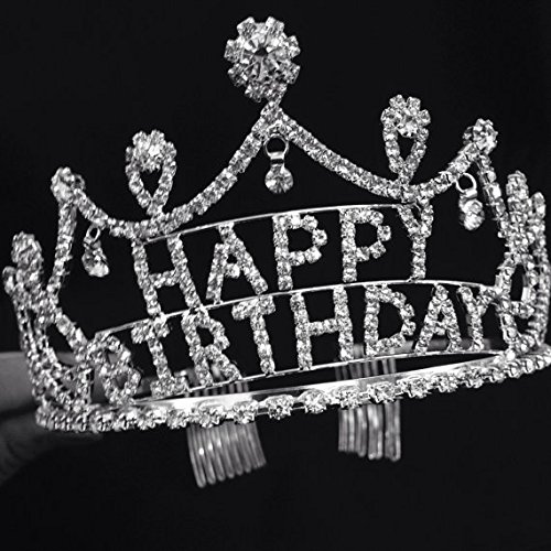 Silver Crystal Rhinestone Happy Birthday Tiara Crown Comb for Cake Topper / Perfect Birthday Crown for Everyone One / 2.5" X 7.5"