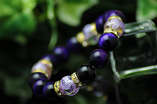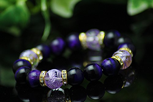 【경 주당】AAA 퍼플 타이거 아이×퍼플 황제 용 수정 12mm 천연석 팔찌