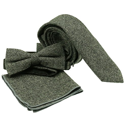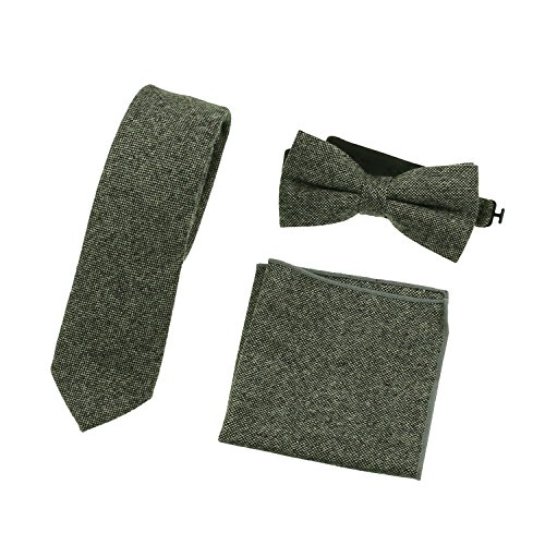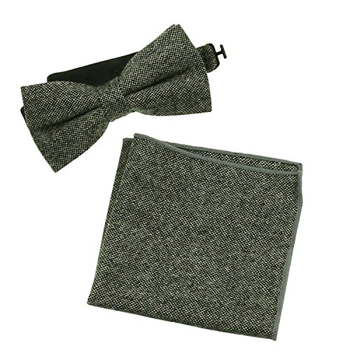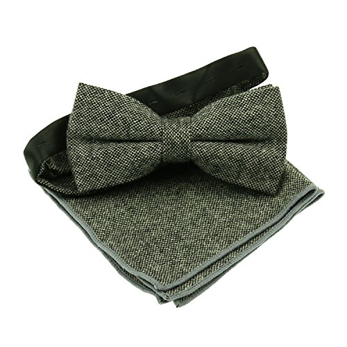 50% Wool 30% Viscose 20% Polyester Pretied Wool Herringbone Bowtie With Adjustable Strap on the Back Bow Tie Measures 4.5"Length x 2.3"Width,Standard Mens Size. Pocket Square Measures 9 " Length x 9 " Width. Charm Style for Casual or Dressy Looks . 3 pack: bow tie, tie, pocket square.(Gray, Brown for choice) 2 pack: bow tie, pocket square.(Gray, Black for choice) 0 |