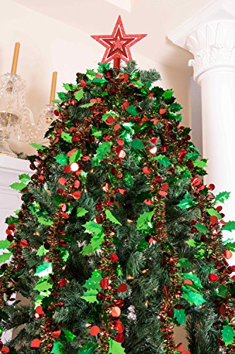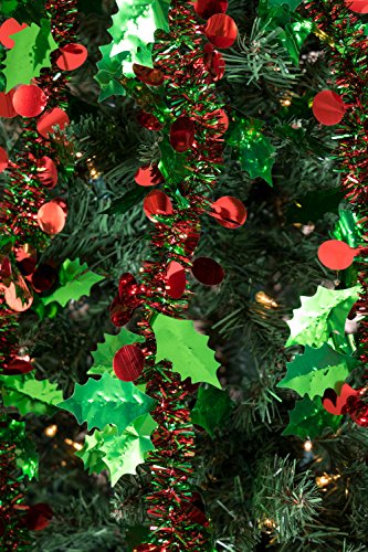 GREAT DESIGN: This red and green Christmas garland features a colorful tinsel body with bright green tinsel leaves and berries all throughout. The beautiful design ensures that you’ll want to put this garland up year after year.