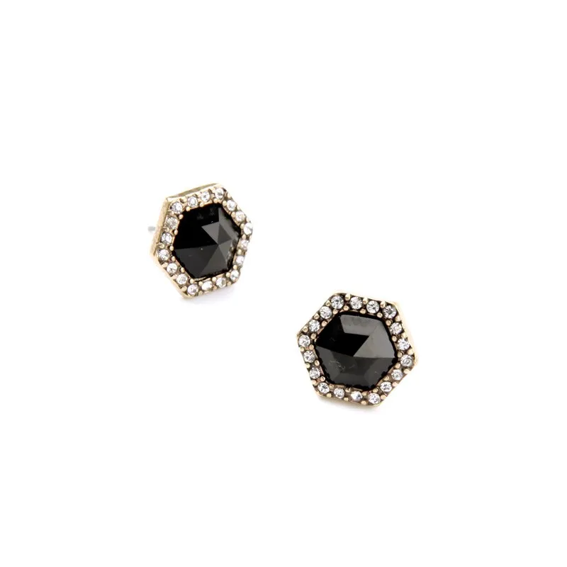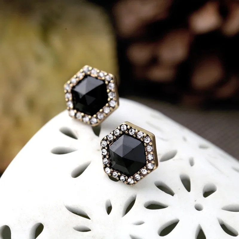 Production name ::Geometric Black Imitation Gems Female Stud Earrings