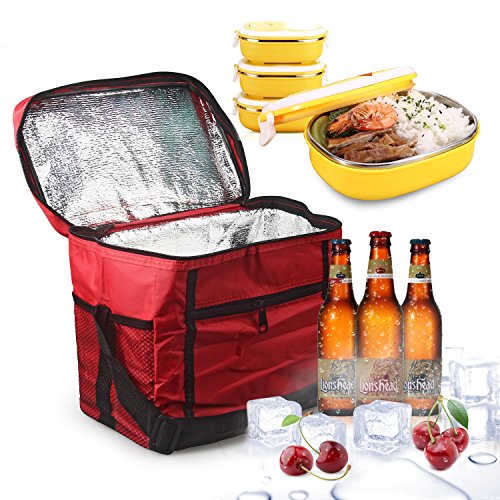 -. Feature : Made of the 300D polyester for extra durability and toughness; for school, work, or travel / Zipper Enclosure, Fully Insulated - Keeps Hot/Cold For Hours! / Light Weight & Easy to Clean - Wipe Down or Hand Wash Cold / Hang Dry! / Size: 10.5L x 9.5H x 7W (inches) / Keep warm: pizza and other cooked food (2-3 hours) Keep cool: can store iced fruit and drinks, breast milk, seafood, etc. Note: Long-distance keep cold or fresh goods, need to put ice around those goods
