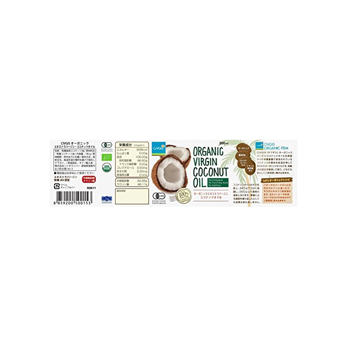 원본상품명: CIVGIS 有機JAS認定 オ?ガニックエキストラバ?ジンココナッツオイル ORGANIC EXTRA VIRGIN COCONUT OIL 200ml