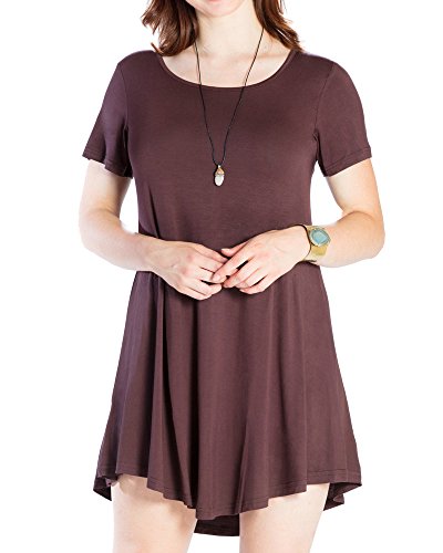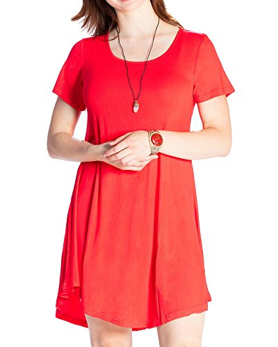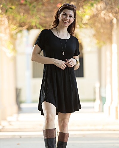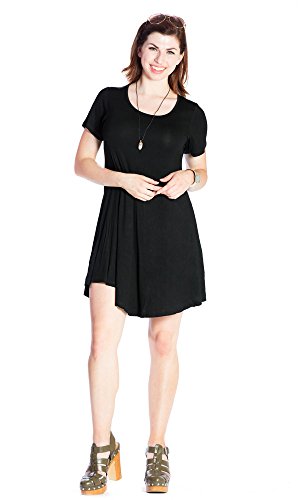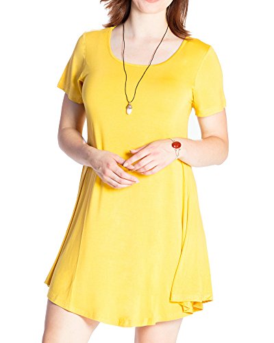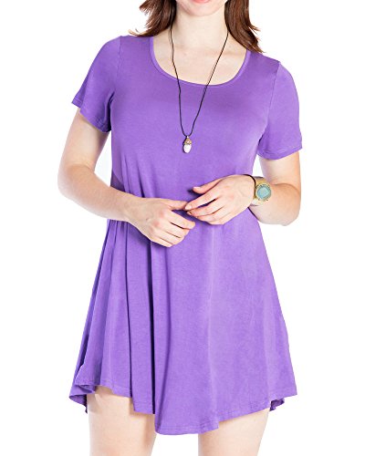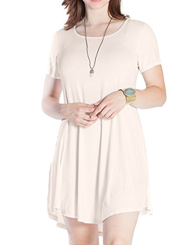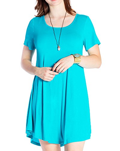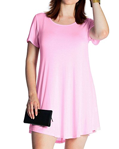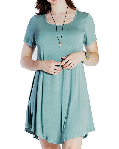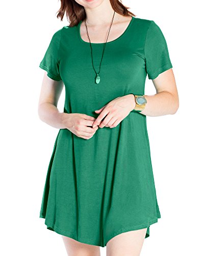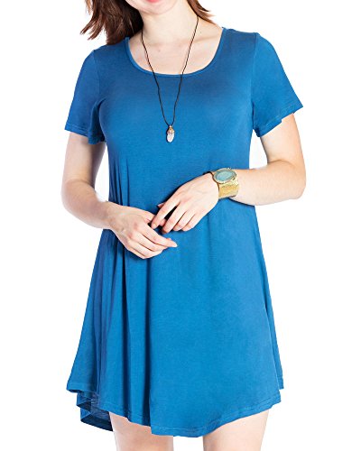 JollieLovin Women's Round Neck Solid Loose Fit Summer Swing T shirt Tunic Dress with Flare Hem An essential summer sun dress by JollieLovin