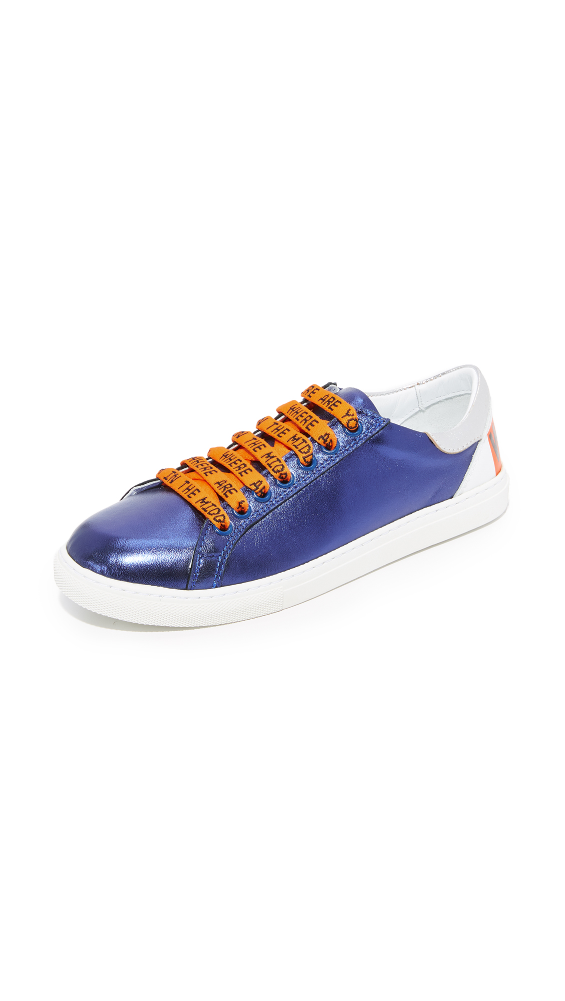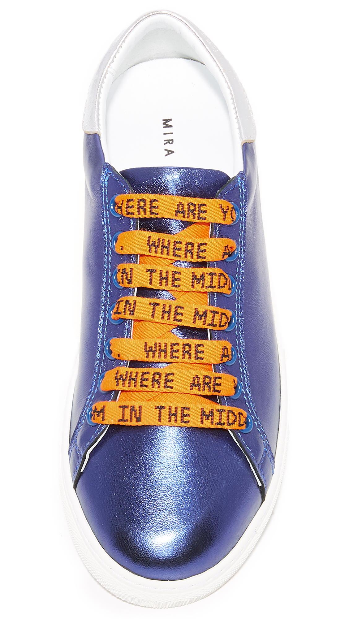 Bold 'Whatever' lettering adds a playful touch to these metallic leather Mira Mikati sneakers. Colorblock heel cap. Lace-up closure. Rubber sole.Leather: Calfskin.Made in Portugal.