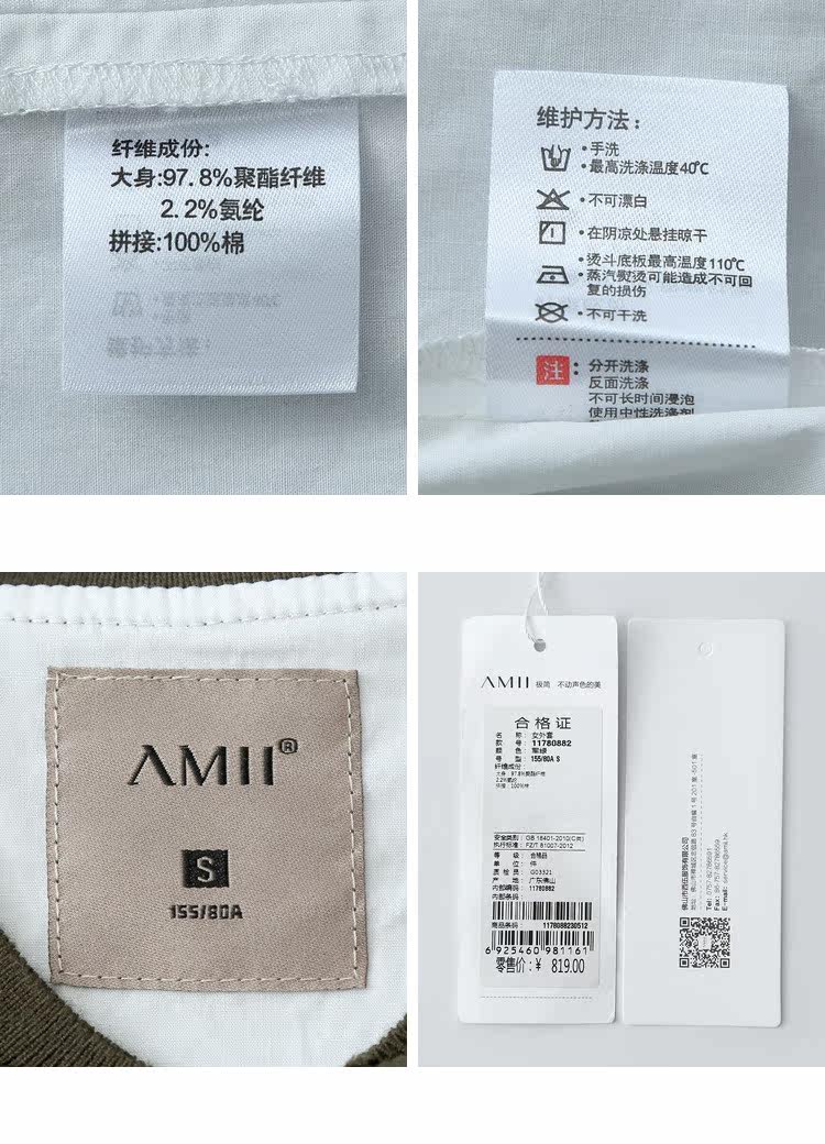 | 洗涤标准: | 不可浸泡不可漂白110℃以下垫布熨烫悬挂晾干40℃以下手洗不可干洗 |