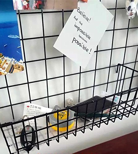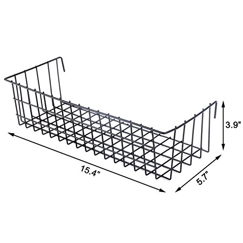 Hosal Creative Mesh Wall Basket Shelf Basket Organizer, Hanging Basket, Black Coated Metal Grid Storage, Me-dium Size, 15.4"x 5.7" x 3.9" for Home Daily Use
