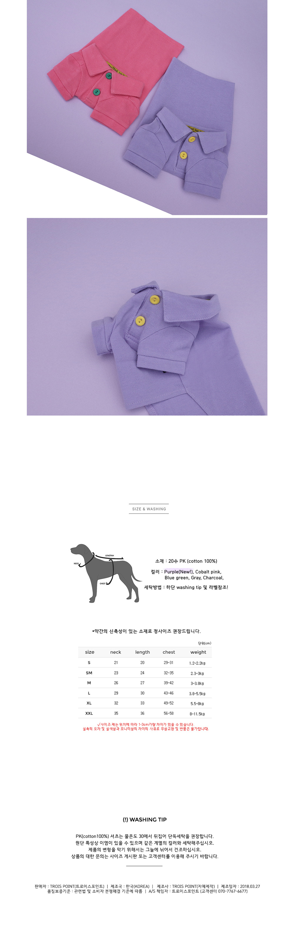 부드러운 면 소재와 측면 라인의 트임이 반려견의 착용감에 있어 편안함을 줄 수 있는 디자인의 셔츠입니다.