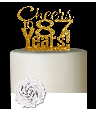 CakeSupplyShop Item#087CTA - 87th Birthday / Anniversary Cheers Super Gold Glitter Sparkle Elegant Cake Decoration Topper