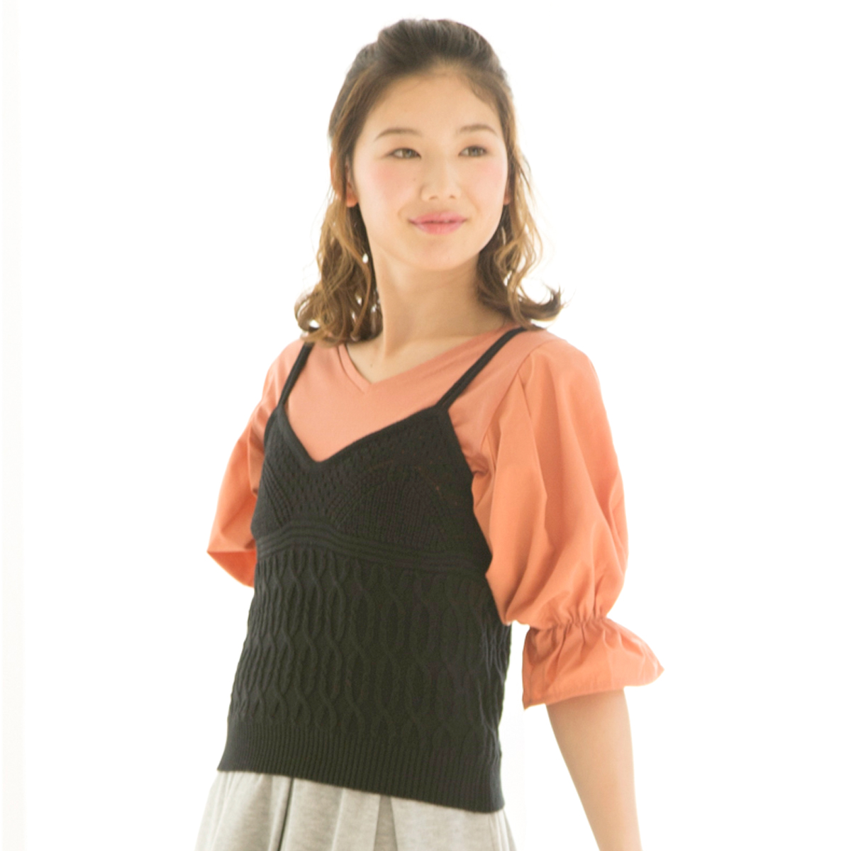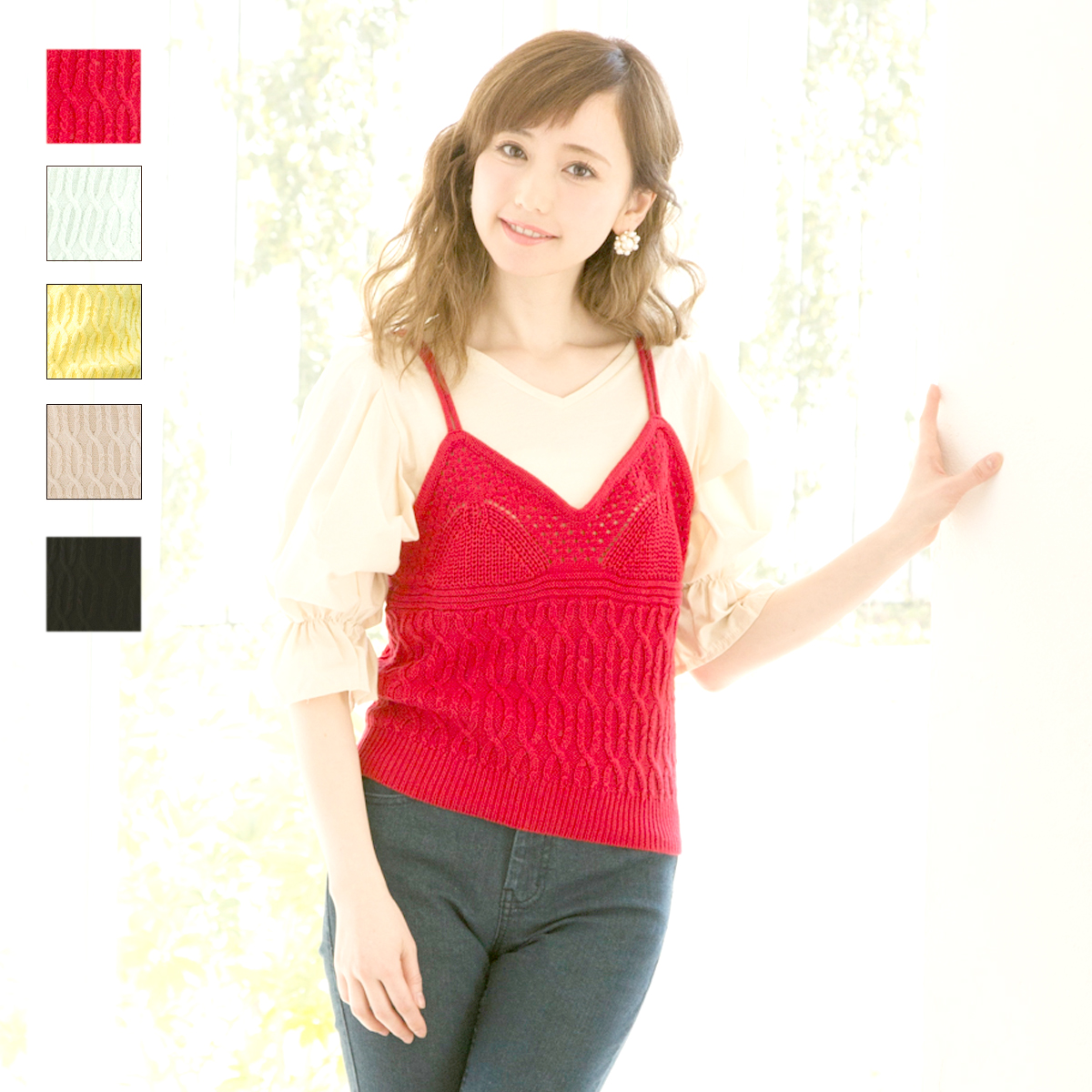 【着用サイズ】ミント、レッド:model:H158cm、着用サイズ:FREEブラック、イエロー、ピンクベージュ:model:H166cm、着用サイズ:FREE