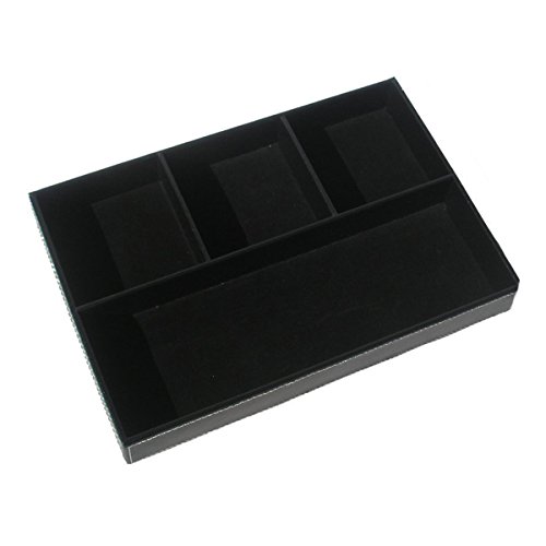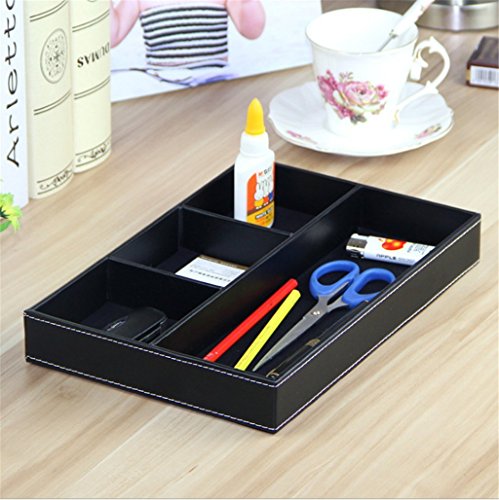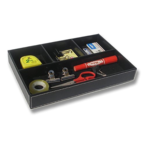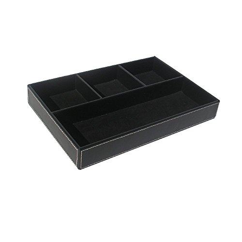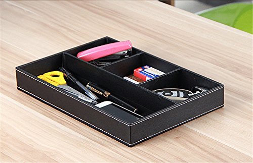 4-Slot Leather Drawer Tray Desk Stationery Sundries Organizer Storage Box Pen Pencil Holder Case Container (Black)