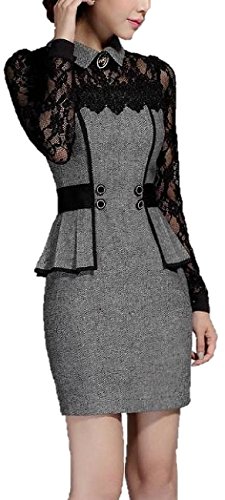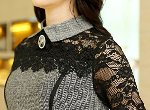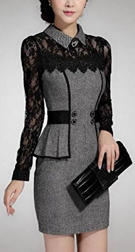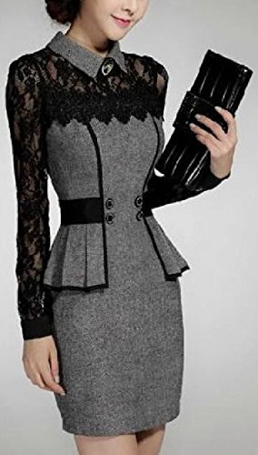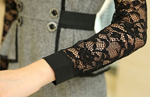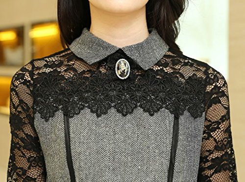 -. Title : 【 B&D】 優雅 上質 レース 切り替え 美 シルエット 長袖 ワンピース ドレス / 大人 エレガント スタイル レディース ファッション 大きい サイズ あります (L, グレー)