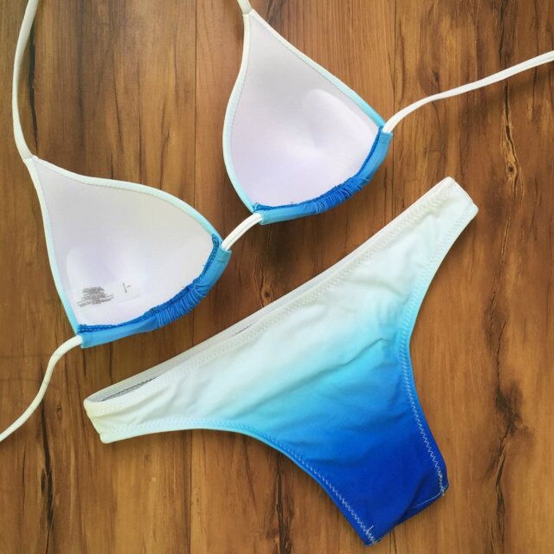 Ropa de bano mujer 2016 Woman Bikini set Strappy Bikini Women Halter Swimwear Swimsuit Bathing Suit Gradient