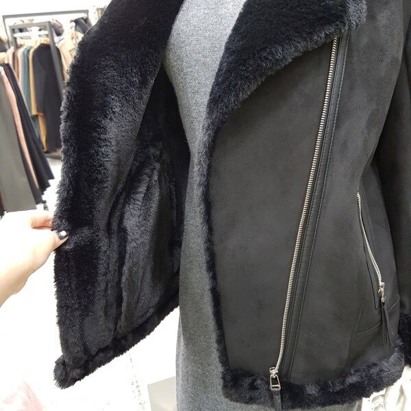 깔끔한 테일러드카라에 안감과 소매안쪽까지 퍼마감 처리로 되여 있어 정말 따뜻해요~^^ 주머니가 있어 편해요. 겉감은 부드러운 스웨이드소재 가볍고 따뜻해서 만족하실 블랙 무스탕 ♡ 소장가치 충분한 제품입니다.