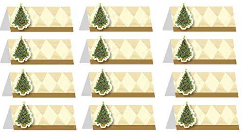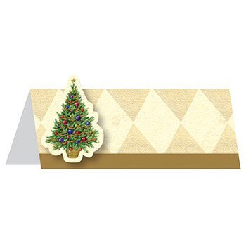 12 Place Cards in each pack decorated in tan diamonds and cute little Christmas tree attachment