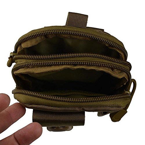 -. Feature : 2 zipper pocket, 1 phone pocket, molle system, hook design, cool and useful. / Made by high quality nylon, durable and easy to wash. / Perfect choice for storing camera, key, phone, wallet, pen, notebook, tool when you go outdoor, camping, hiking, climbing, etc. / Capacity: Less Than 20L / Size: 12cm x 17.5cm x 6cm/4.72" x 6.89" x 2.36" (Approx.)