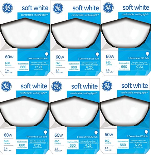 GE Lighting 14848 Soft White 60 Watt Frosted G25 Light Bulb - Edison Base A19, 6-Pack