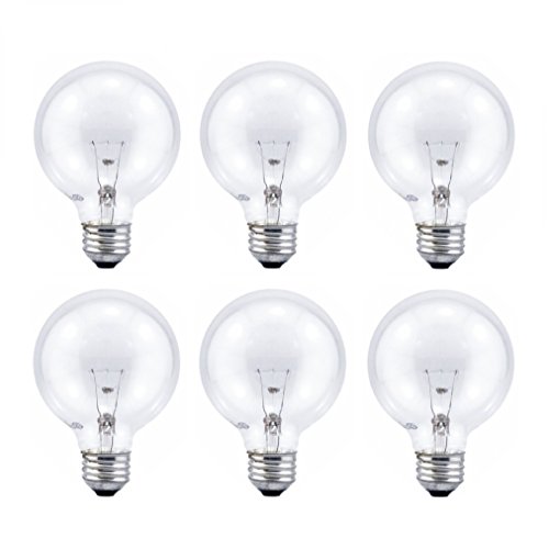 Sylvania G25 Crystal Clear Globe, 60-Watt, (E26) Medium Base, Energy Efficient Double life - Value 6 Pack