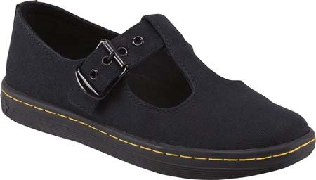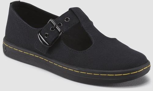 T-Bar Shoe. Canvas upper. Single buckle fastening. The sole is stitched and cemented to the base of the upper and to the insole. Dr. Martens air-cushioned sole.Feature