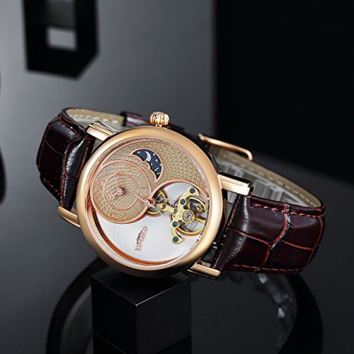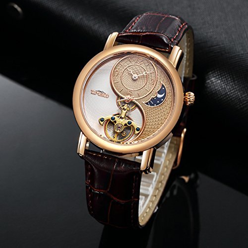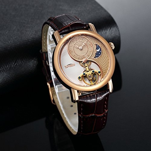 -. Feature : 太陽と月と星付け、太極形、メンズ向け、女性向け、中空フライホイール / 機械式、ビジネス風、カジュアル、バックルクラスプ、スポーツ / 父の日のプレゼント 防水、ラウンドフェイス、天然皮革バンド、ブラックバンド / ステンレス鋼ケース、白いケース、ステンレス鋼裏蓋、金属文字盤 / ローズゴールデン文字盤、アナログ文字盤、強化ガラスミラー、自動巻きムーブメント