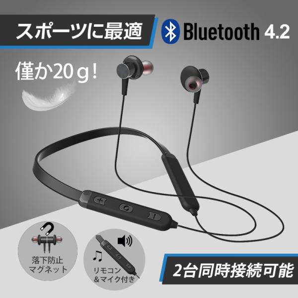 軽量で高音質なワイヤレスイヤホン。 イヤホンを使用しない時はヘッド部分をくつけて、そのまま首にかけて移動や運動できます。■対応機種Bluetoothが使用できるパソコン、スマートフォン、タブレット、音楽プレーヤー【!】購入前にご確認ください。お手持ちの機器がBluetooth対応かご確認ください。対応機種のお間違いによる返品、交換は受けかねます。予めご了承下さいませ。■特徴連続通話時間:4-5時間音楽再生時間:4-5時間充電時間:1.5-2時間待受時間:180時間再生周波数帯域:20Hz-20,000HzBluetoothバージョン:4.2重量:20g■カテゴリキーワードイヤホン Bluetooth ブルートゥース ワイヤレス 電話通話 音楽 再生 ミュージックイヤホン Bluetooth 防水 【 イヤフォン ワイヤレス 高音質 ブルートゥース マグネット iphone アイフォン android スポーツ 両耳 無線 iPhone8 iPhonex ipod iPhone7 無線 マイク マイク付き 通話 Xperia iPad ワイヤレスイヤホン Galaxy ハンズフリー iPhone6 iPhone6sアイフォン アイホン あいほん android アンドロイド 内容:本体*1 USB充電ケーブル*1 スペアイヤーチップ*2セット