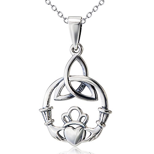 -. Feature : Material: 925 Sterling Silver / Pendant Size:34*19MM Weight: 4 Grams. Rolo Chain 18'' / The Celtic knot can bring you good luck . This unisex celtic pendant is great for teenage boys, men and women alike. / The Necklace Meaning "With my hands I give you my heart, and crown it with my love" Or "Let love and friendship reign forever" / The hands in the symbol represent friendship. The heart depicts love. And the crown means loyalty.