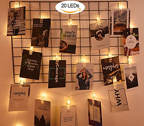 - 【COOL GIFTS/DECORATIONS】-- 20 LED string lights with sturdy clips, 10 ft./3m total length and 4 inches/10 cm interval between clips, long enough for hanging pictures, cards, memos and artworks. Ideal gift for your family and home decorations.