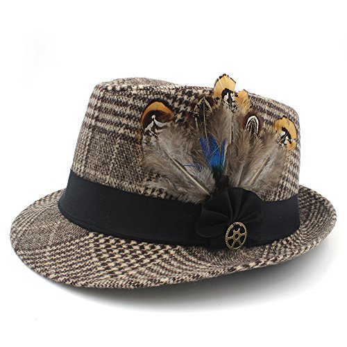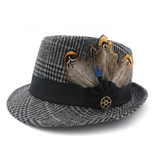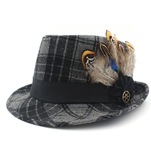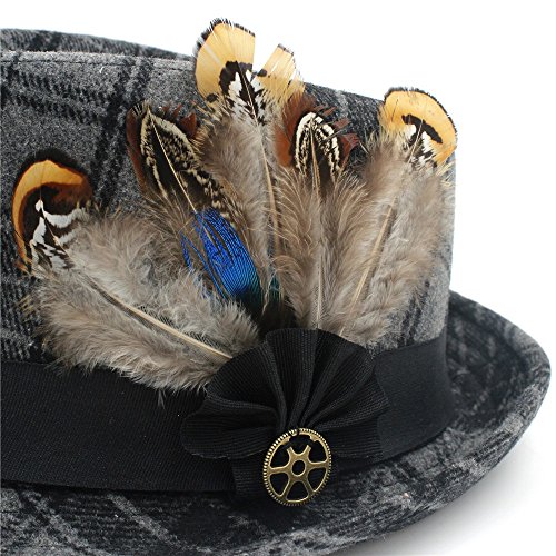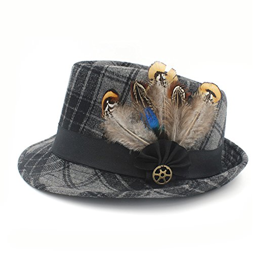 (Battle Men)/Accessories/Hats/DIRECT FROM USA/Battle Men Women's Wool Sombreros Jazz Hat Men's Panama Fedora Black Belt Bowtie Feather Decor