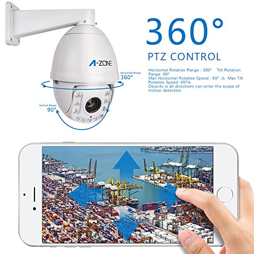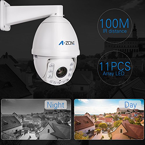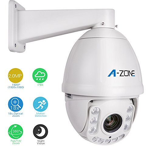 A-ZONE 2.0MP AHD PTZ Dome Camera 18x Optical Zoom, 1080P Waterproof Night vision up to 100M Indoor/Outdoor CCTV surveillance Camera, Free App, Medium Speed Security Camera Coaxial System