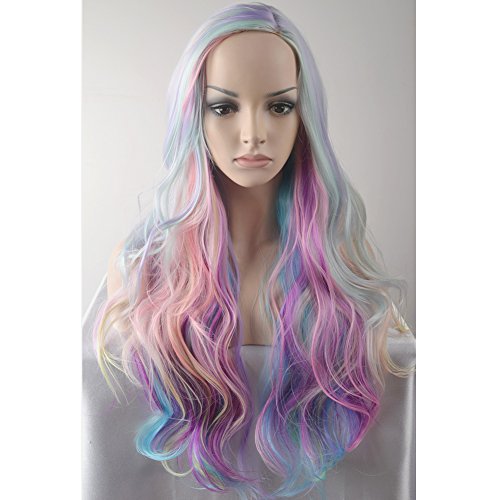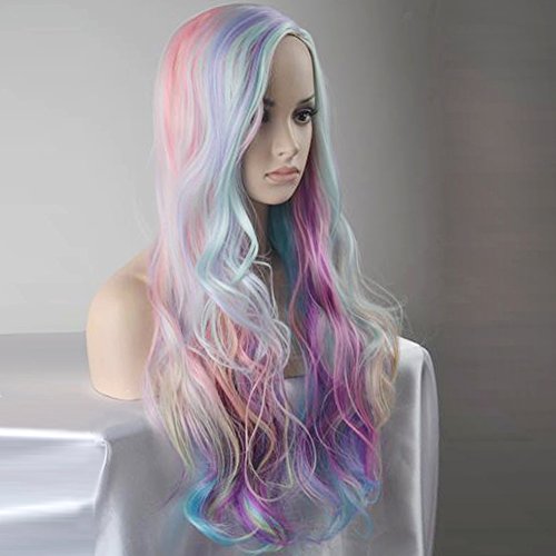 RightOn Long Curly Multi-Color Charming Full Wigs for Cosplay Girls Party with Wig Cap (Colorful)