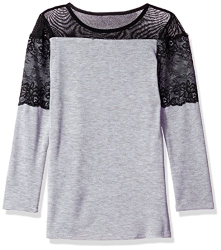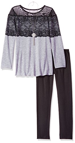 Amy Byer Big Girls' Long Sleeve Lace Top with Legging, Heather Grey, Small