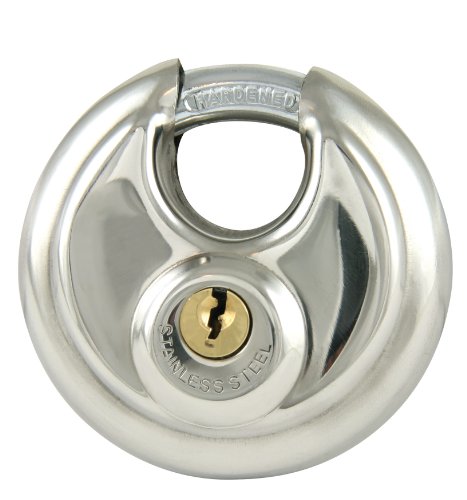 -. Feature : 2-3/4" stainless steel padlock round disc 2 per pack / Shrouded shackle for extra pry resistance / Keyed alike single locking / Solid brass pin tumbler cylinder / Hardened steel chrome plated shackle designed for maximum cut resistance
