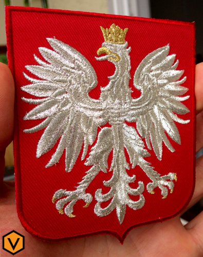 -. Feature : VEGASBEE® ORIGINAL / POLISH POLSKA COAT OF ARMS / POLAND EAGLE CREST RED SHIELD / POLAND EAGLE EMBROIDERED PATCH / POLISH CREST SILVER METALLIC EMBROIDERY