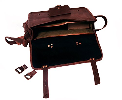 -. Feature : Dimensions: 15"x11"x4.5", 60 inch Adjustable Shoulder Strap. Fits upto 15" laptop easily. Walls are padded to keep the laptop safe. / MANY BUYERS COMPLAINED OF THE BAD QUALITY because they selected attractive offers. In order to get a top quality bag , PLEASE BE CAREFUL WHILE MAKING YOUR PURCHASE . PLEASE CHECK THE BRAND NAME AND SELLER NAME / 3 Compartment and 2 Zipper pocket and 1 small pocket in front and 1 small pocket in side. / Original handmade leather bag with brown color and metal fittings, NO Bad Odour. / Classic retro style laptop/college messenger bag.This bag has enough room for your books, laptop, files and other essentials. Leave an impression on your colleagues and your friends by this classic unisex bag.