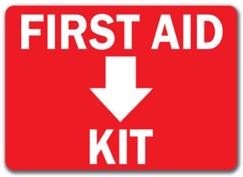 -. Title : First Aid Kit with Down Arrow Sign - 10" x 14" OSHA Safety Sign
