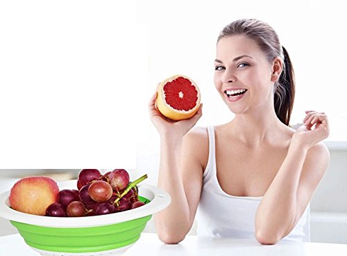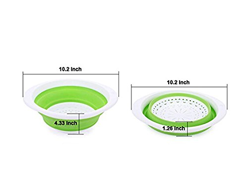 Collapsible Kitchen Strainer (Colander) for Fruits, Pasta and Vegetables. Set of 2 In Blue and Green Color (2, Green)