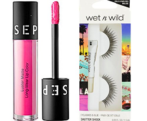 -. Title : SEPHORA COLLECTION Luster Matte Long-Wear Lip Color in Electra-pink and a free set of Wet'n Wild faux eyelashes