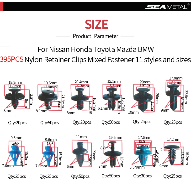 Car clips package:Clips x 395pcs + tool x 1