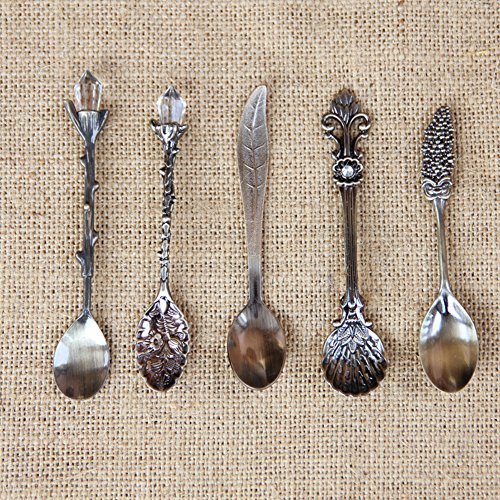 Dessert Spoons,Coffee SpoonTeaspoon,Awakingdemi Vintage Royal Style Metal Carved Fruit Dessert Spoons for Kitchen Dining Bar,6pccs/set