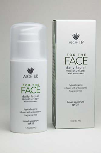 Aloe Up's bestselling 'For the Face' has been repackaged in a 1.7oz hygienic airless pump and reformulated to include broad spectrum coverage without Oxybenzone. Aloe Vera Gel based For the Face daily facial moisturizer helps combat skin damage associated with sun exposure. Non-comedogenic, hypoallergenic, and fragrance free formula suited for all skin types.
