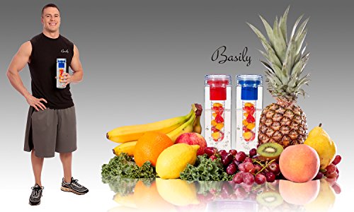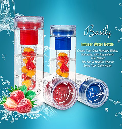 Basily Infuser Water Bottle - 28 ounce - Made with Commercial Grade Tritan - PLUS Recipe Ebook INCLUDED