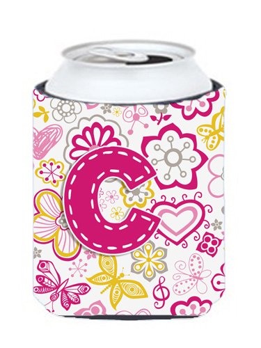 Letter C Flowers and Butterflies Pink Can or Bottle Hugger CJ2005-CCC