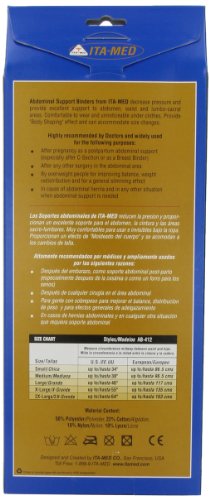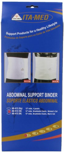 -. Binding : Health and Beauty -. Brand : ITA-MED -. EAN : 0656175001672 -. Feature : Provides inchBody Shapinginch effect and can accommodate size changes / Provides excellent abdominal and lower back support / Decreases pressure and provides support to abdomen, waist and lower back / Comfortable to wear on a daily basis and is not noticeable when worn beneath clothes / Provides a slightly greater contoured fit than our three panel design and covers more of the back and abdomen for increased support / Specially designed to fit a woman's body / Decreases pressure and provides excellent support to the abdomen, waist and lower back / Features Velcro hooks for easy adjustment and a perfect fit / Comfortable to wear and unnoticeable beneath clothes / Provides "Body Shaping" effect and can easily accommodate size changes -. IsAdultProduct : 0 -. Label : ITA-MED -. Manufacturer : ITA-MED -. Model : I AB-412(W) W S -. MPN : I AB-412(W) W S -. NumberOfItems : 1 -. PackageQuantity : 1 -. PartNumber : I AB-412(W) W S -. ProductGroup : Health and Beauty -. ProductTypeName : HEALTH_PERSONAL_CARE -. Publisher : ITA-MED -. ReleaseDate : 2007-09-26 -. Size : Small -. Studio : ITA-MED -. Title : ITA-MED Women's Breathable Elastic Abdominal Binder (12" Wide), Small -. UPC : 656175001672