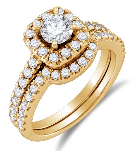 - Title : 14K White Gold Large Diamond Halo Ladies Bridal Engagement Ring with Matching Curved Notched Wedding Band Two 2 Ring Set - Solitaire Setting w/ Channel Set Round Diamonds (1.36 cttw, 1/2 ct Center)