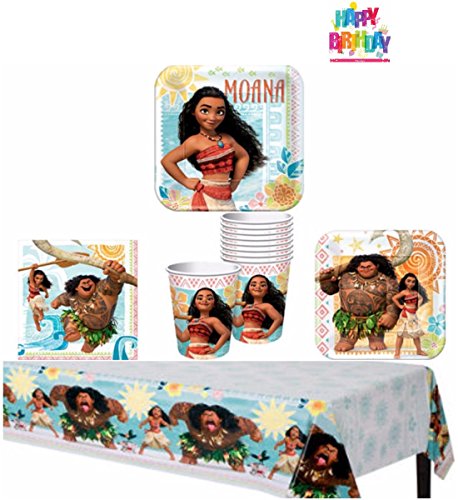 -. Title : Disney Moana Party Supplies Pack for 8 Guests - Lunch Plates, Dessert Plates, Lunch Napkins, Cups, and a Table Cover