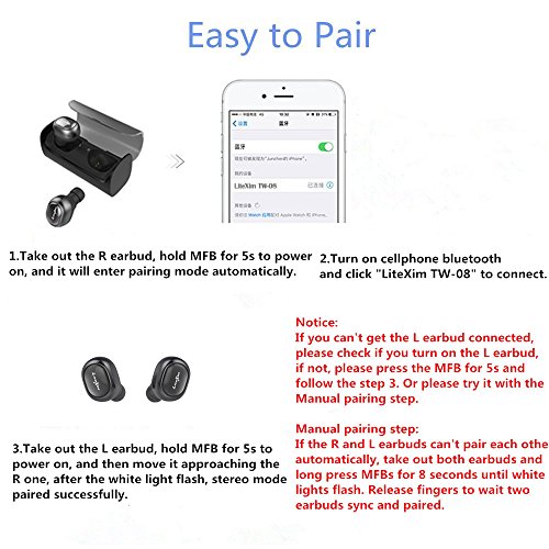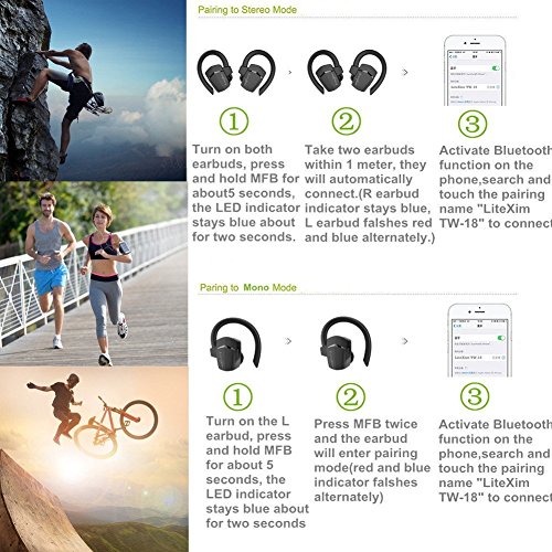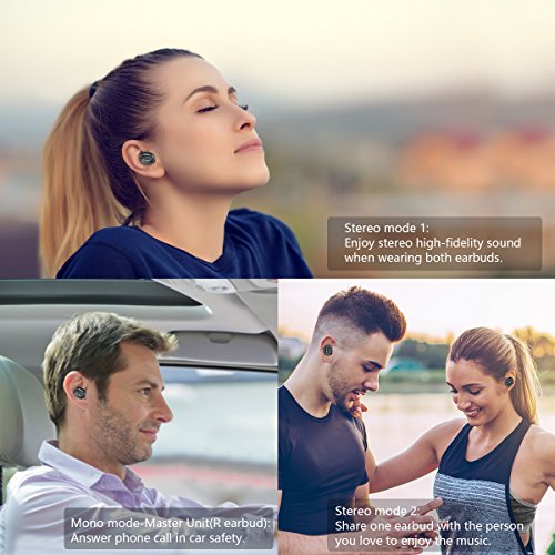 Stereo-Modus/Mono-Modus: Sie konnen Paar zwei kleine Kopfhorer in ein paar dann erleben Sie absolut Kabel frei Stereo-Klang. und nur rechts Kopfhorer unabhangig voneinander verwendet werden konnen als Mono-Modus, wird sicherer, wenn Sie ein Auto fahren. Geniessen Sie einfach fantastischen Surround Musik aus Ihrer Lieblings-Playlisten auf Phone.